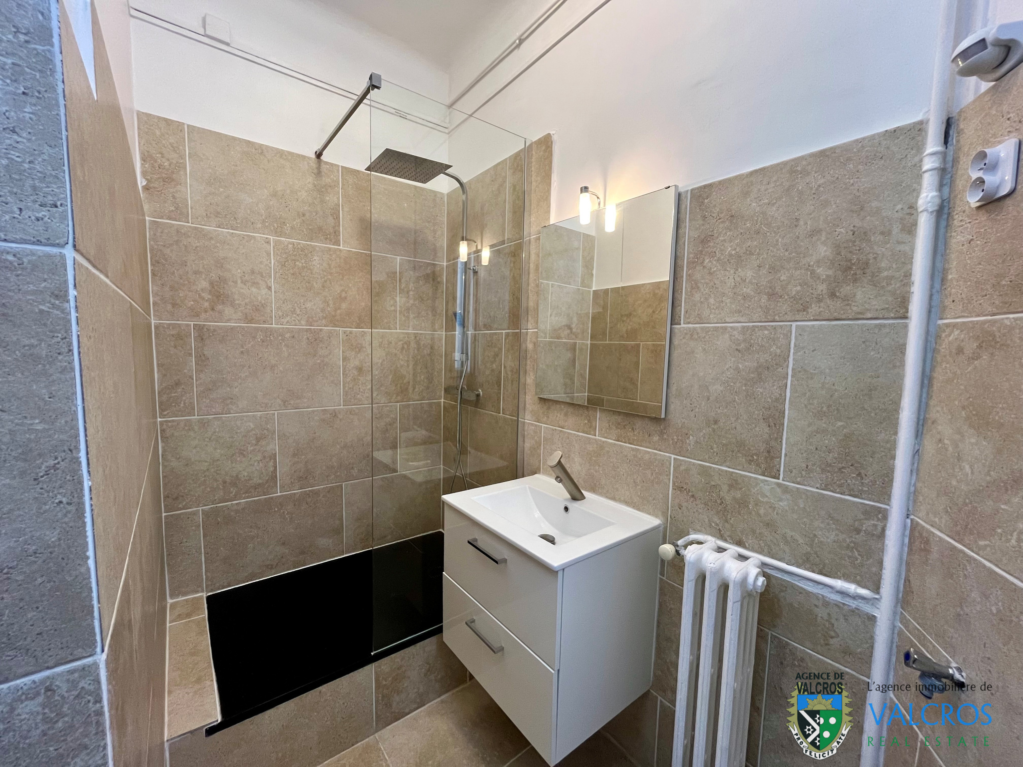 • une salle d’eau contemporaine avec finitions soignées
