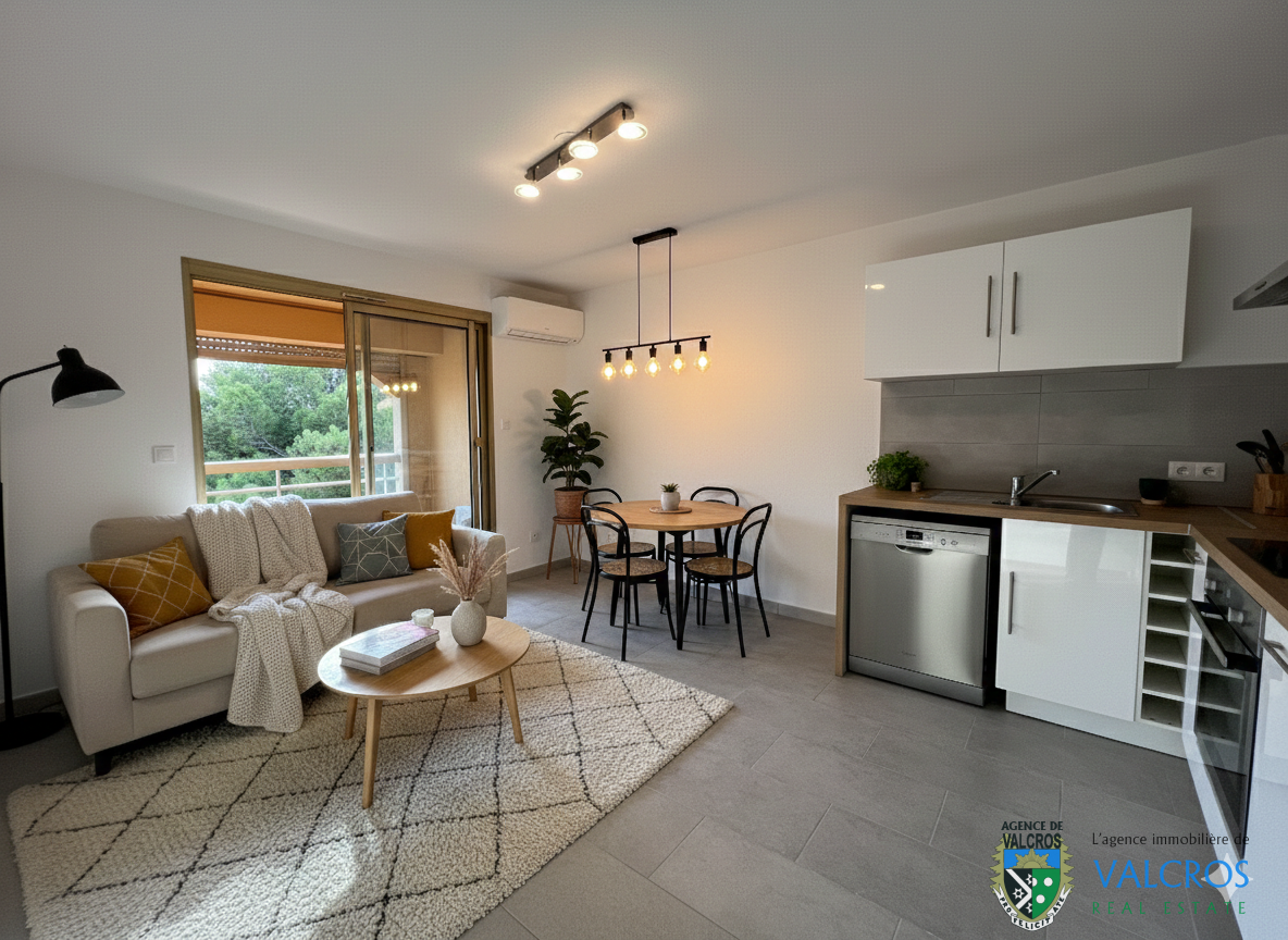 L’appartement offre une pièce de vie lumineuse, un espace cuisine fonctionnel, une salle d’eau moderne ainsi qu’un balcon agréable.