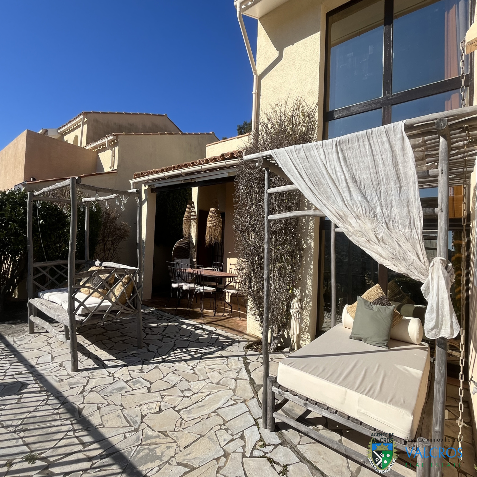 Située au cœur du Domaine de Valcros, dans un lotissement fermé avec gardien et piscine (collective), cette charmante maison sans vis-à-vis offre une superbe vue sur les collines et la mer depuis sa terrasse solarium panoramique.
