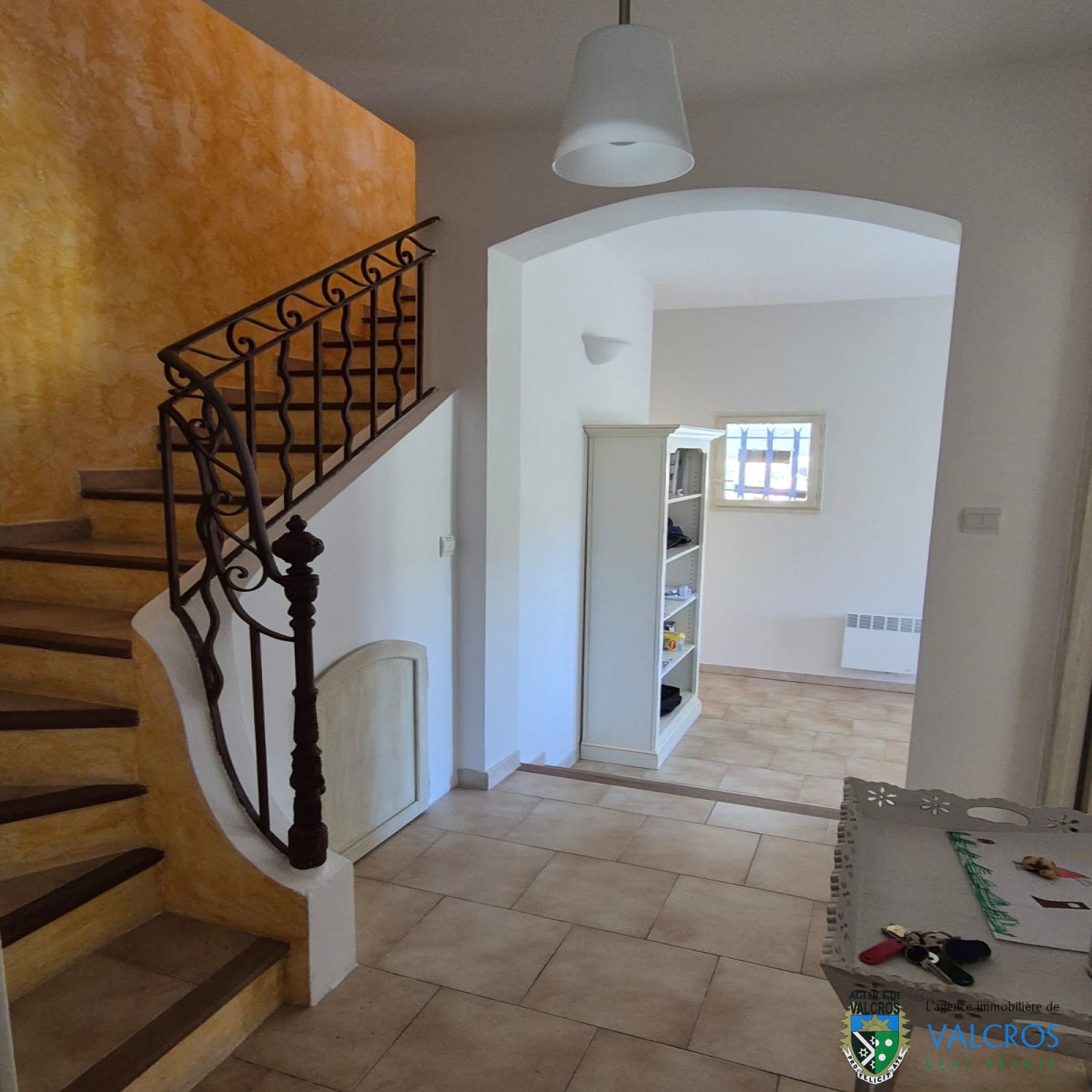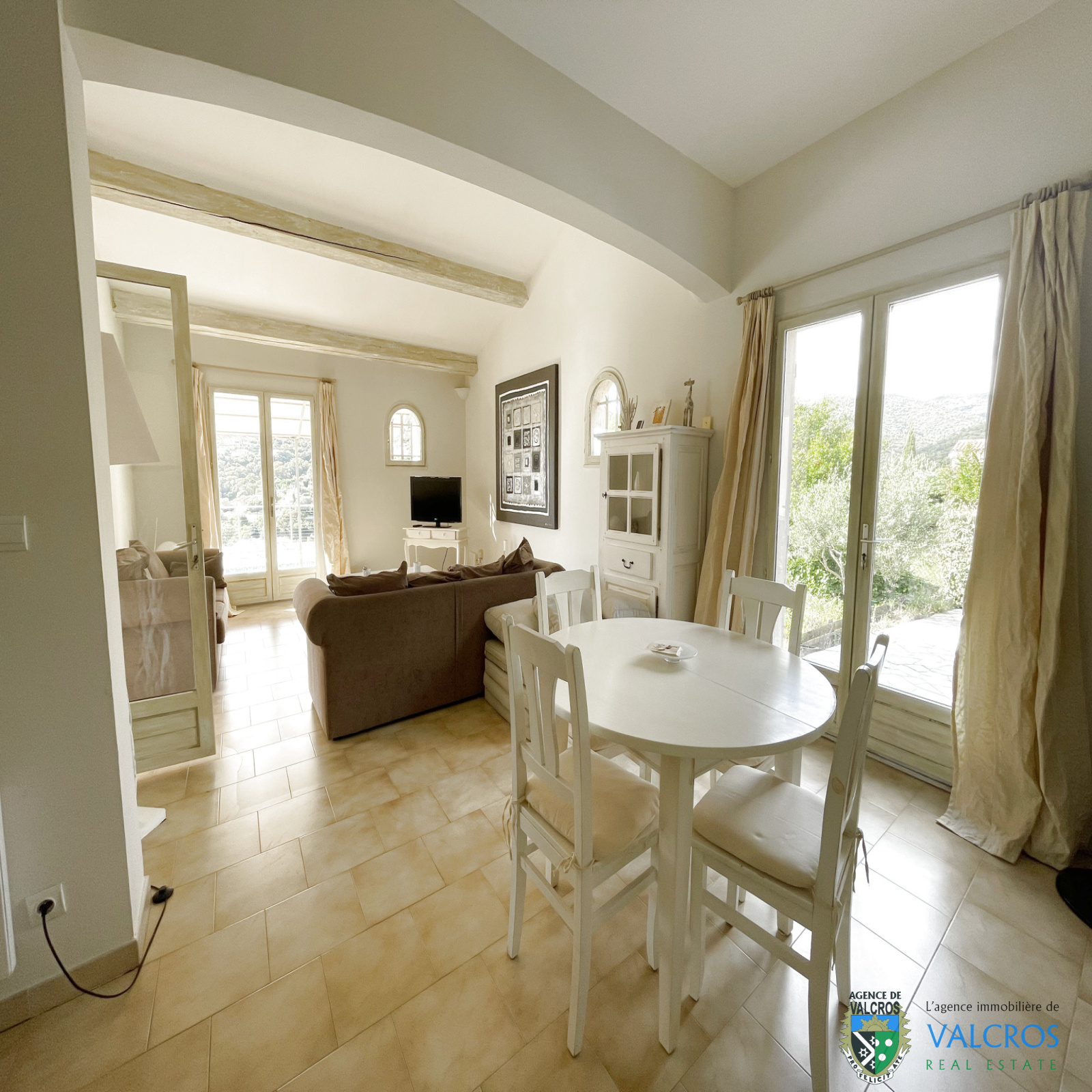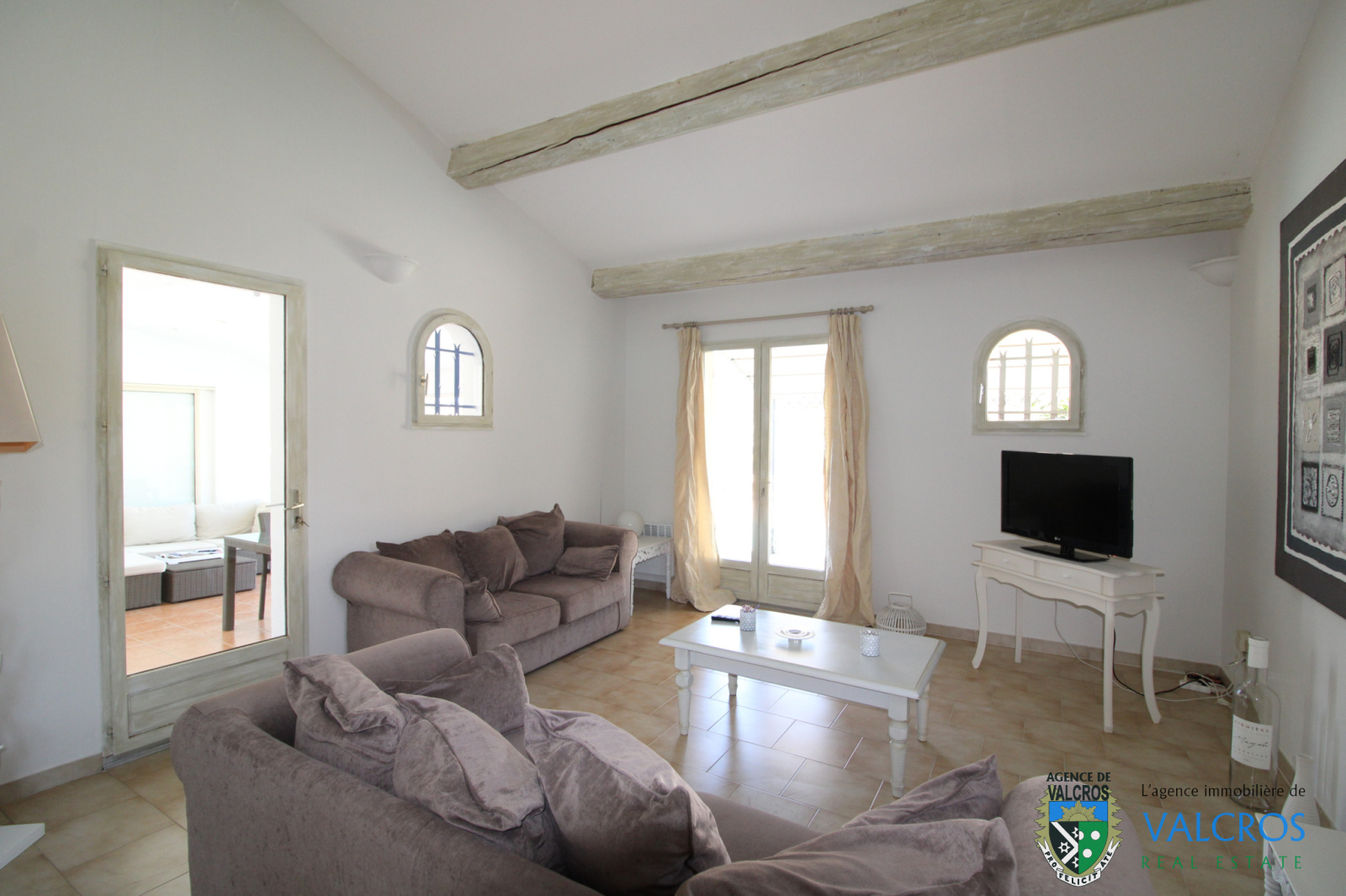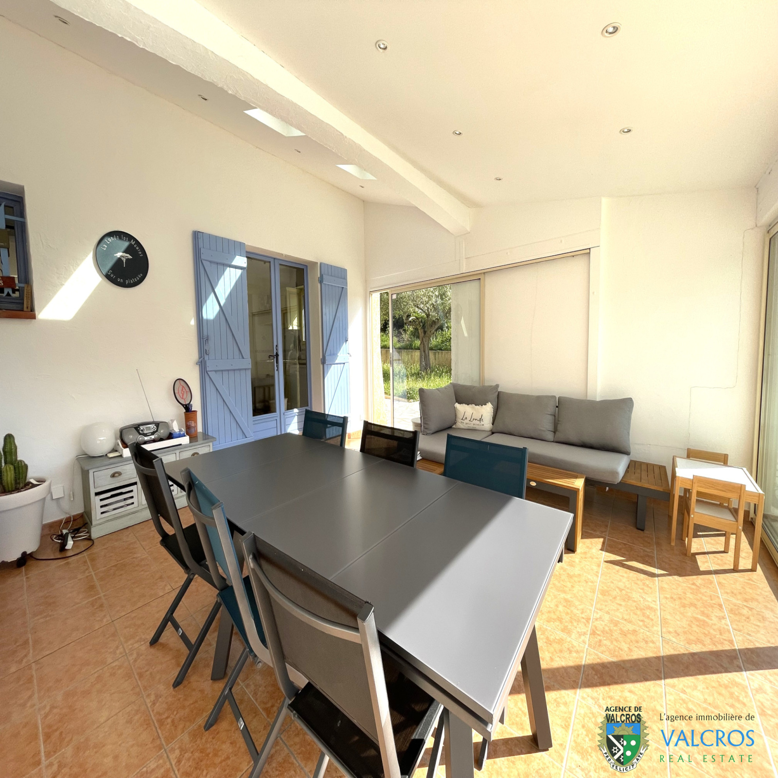 Située au cœur du très prisé Domaine de Valcros, réputé pour son magnifique parcours de golf 18 trous, cette charmante villa d’environ 130 m² habitables vous séduira par son environnement calme et verdoyant, ainsi que sa vue dégagée sur la nature et le golf. Implantée sur un terrain paysager de + de 1 630 m², la maison se développe sur deux niveaux. Dès l’entrée, vous serez accueilli par un hall avec placard menant à une spacieuse suite parentale, ainsi qu’à une pièce de vie lumineuse composée d’un grand salon/séjour prolongé par une véranda avec vue sur la piscine et le jardin. La cuisine séparée s’ouvre sur un cellier fonctionnel.