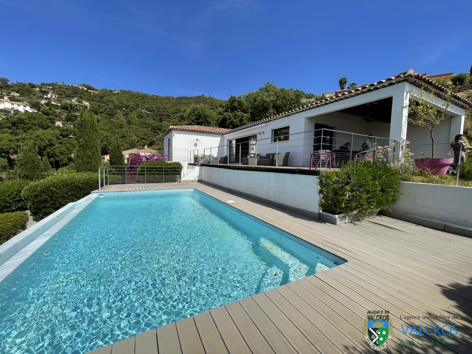 VENDUE maison 6 pièces avec vue mer panoramique, piscine, garage ; au calme et sans vis à vis, sur le Domaine de Valcros à La Londe les Maures.