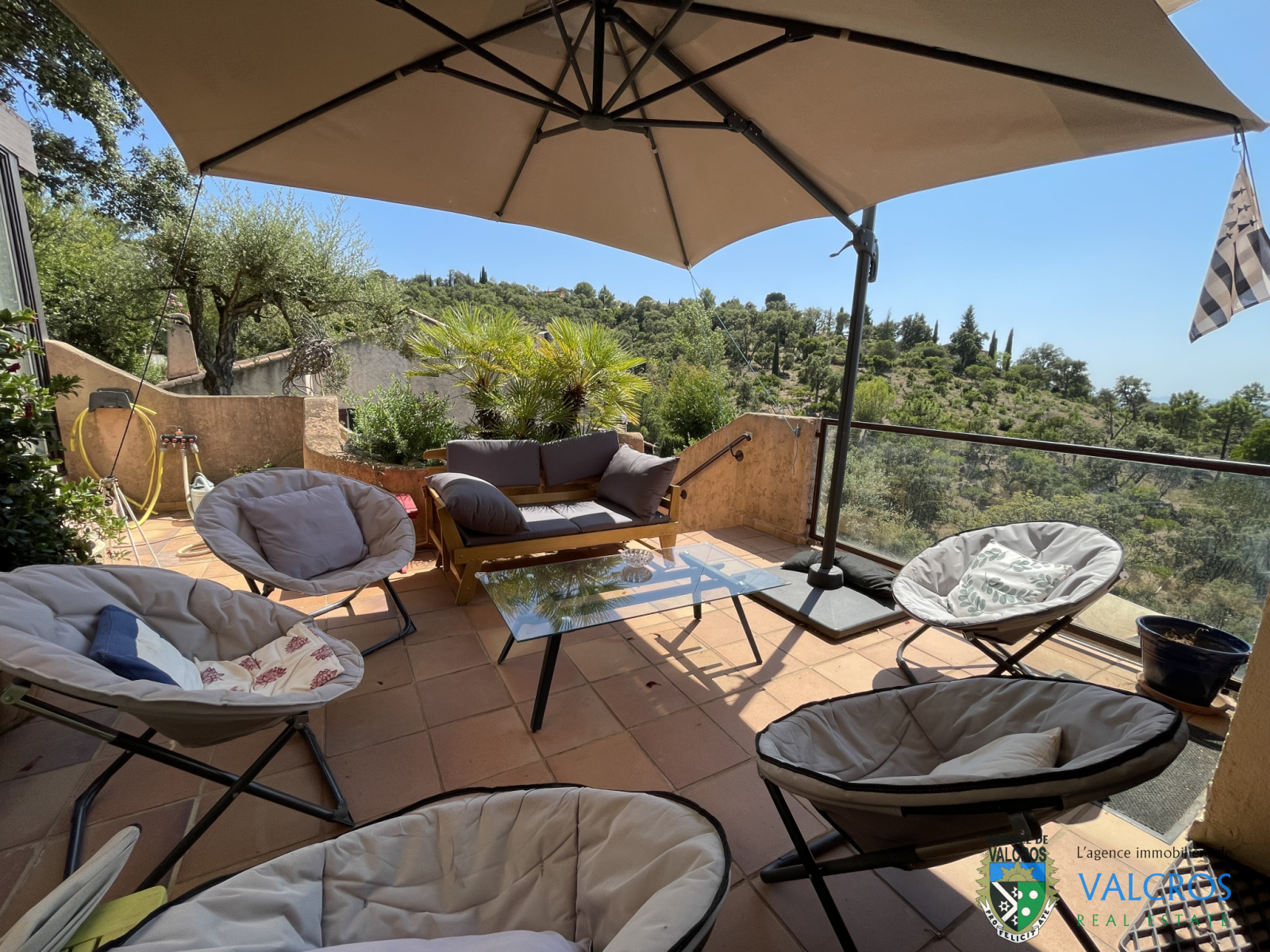 Elle comprend, au Niveau principal : une Belle entrée ouvrant sur un vaste séjour de 44 m² donnant sur une terrasse de 18 m² avec vue panoramique. Une cuisine provençale entièrement équipée avec buanderie + grands celliers attenants. Enfin elle ouvre sur une terrasse fermée par baies coulissantes avec barbecue intégré. Sur ce niveau également une suite parentale avec double dressing, salle d’eau et toilettes séparées.