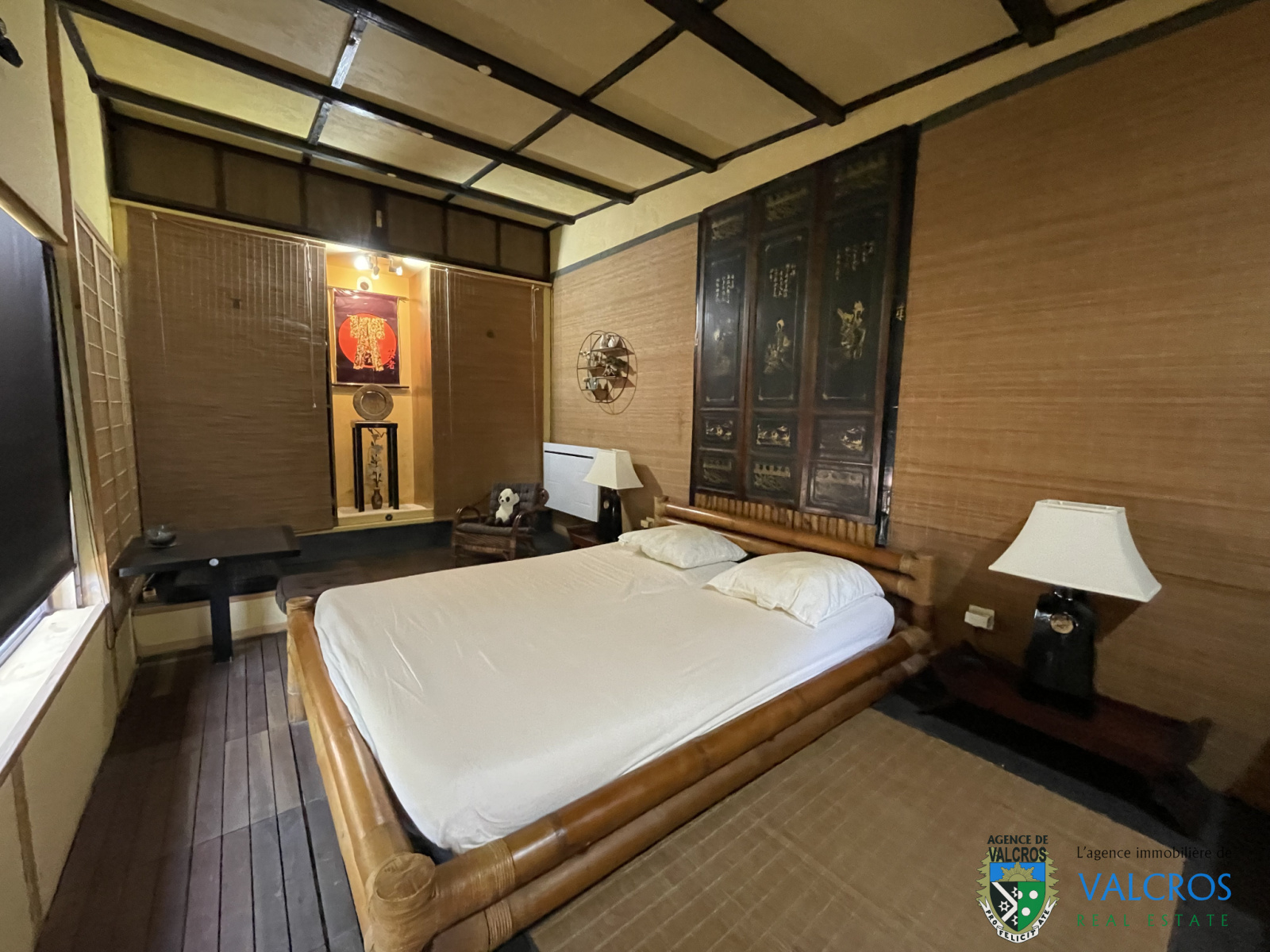 En Annexe et attenante : Grande chambre de style japonais avec salle d’eau, WC et pièce attenante pouvant servir de chambrette (lits superposés) ou de kitchenette (à équiper)