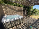 Extérieur : Un jardin bien entretenu avec jacuzzi, offrant un espace de détente et de loisirs en plein air.