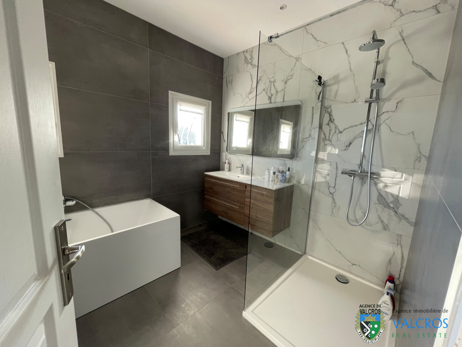 En rez-de-jardin, deux grandes chambres lumineuses s’ouvrent sur l’extérieur et partagent une salle de douche. Un espace indépendant, équipé d’une kitchenette, d’une salle d’eau et de WC, complète ce niveau : parfait pour un studio ou un logement d’invités.