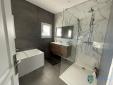 Partout, la lumière circule, soulignant les tons clairs, les matériaux nobles et les volumes apaisants. La cuisine ouverte, élégamment équipée, prolonge cet espace convivial où l’on peut recevoir, cuisiner, échanger ….