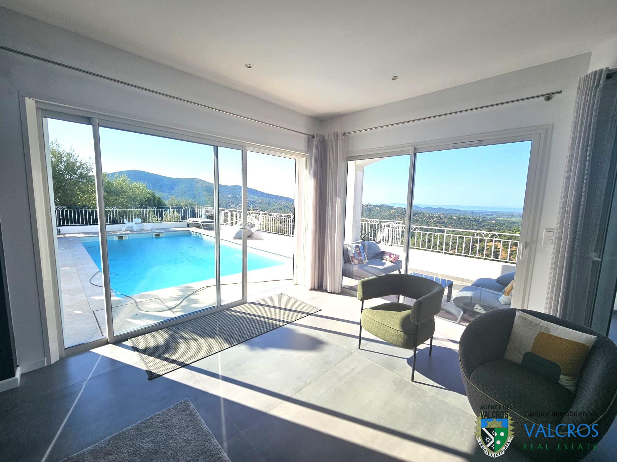 Là, face à l’immensité bleue, une villa s’ouvre au soleil, offrant sa façade au spectacle permanent de la mer, des Îles d’Hyères qui s’étendent à l’horizon comme un tableau vivant. Entre deux collines. cette demeure récente et soigneusement entretenue mêle élégance architecturale et douceur de vivre.
