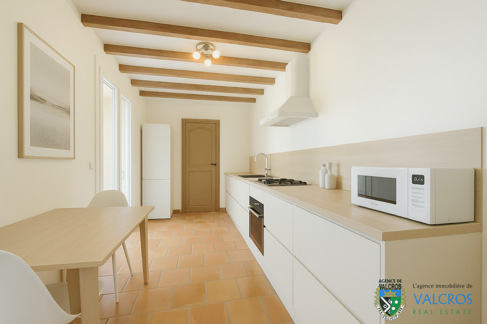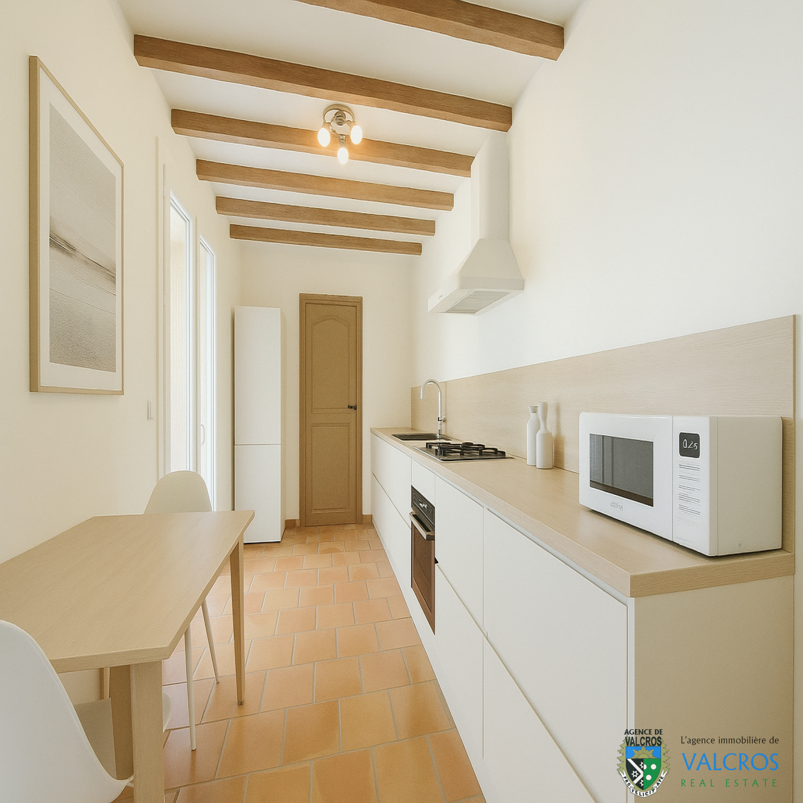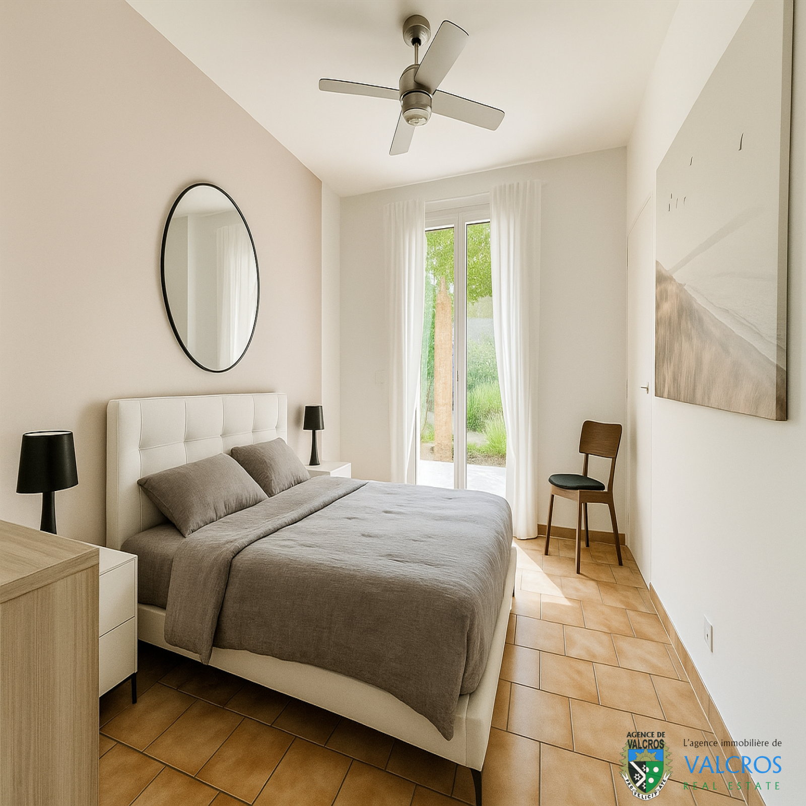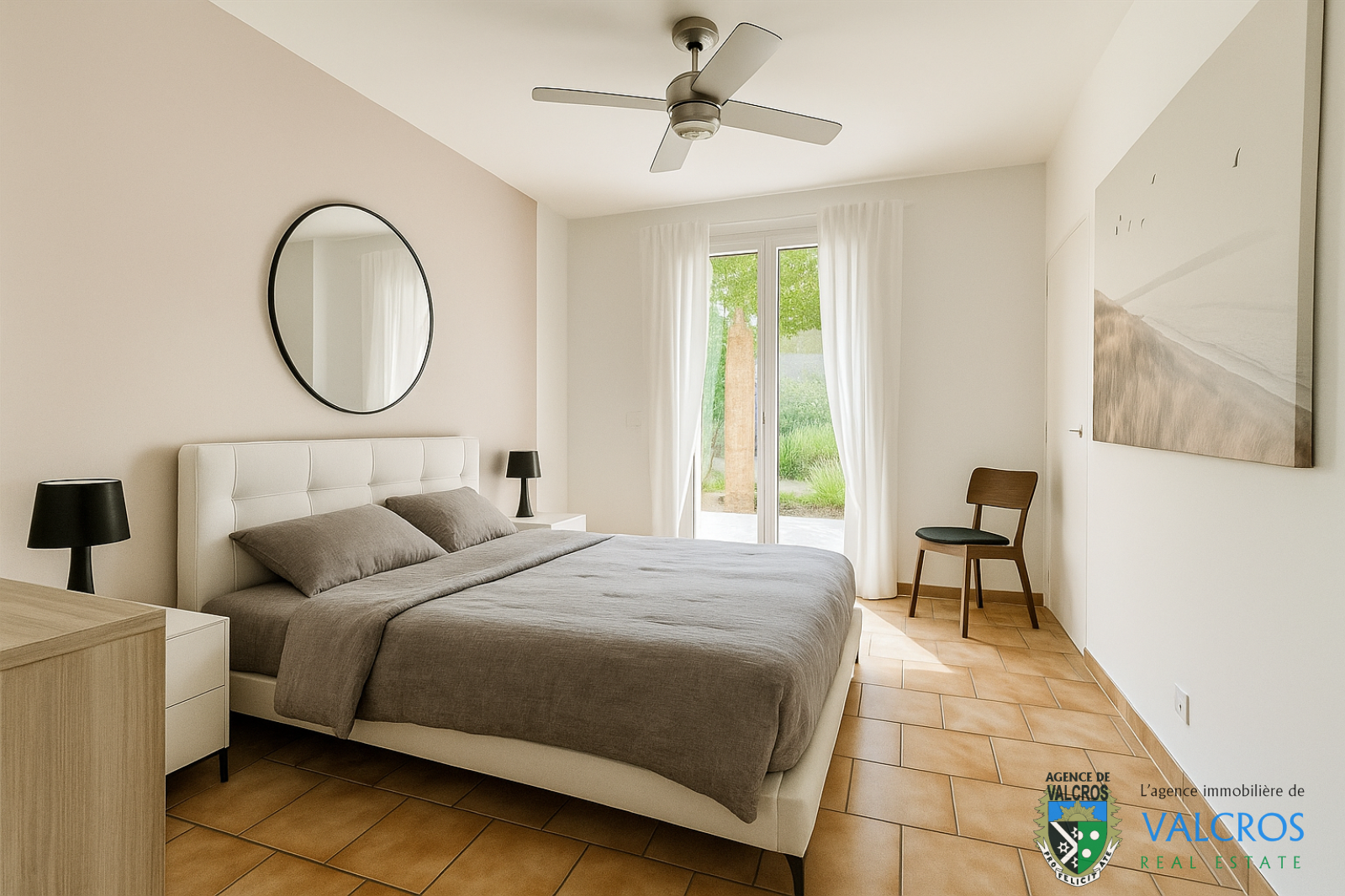 Au rez-de-chaussée : Une entrée accueillante avec placard, Deux chambres orientées plein sud, ouvertes sur une terrasse privée, Une salle de bains avec baignoire et douche, de WC indépendant, Un vaste espace de vie : salon, salle à manger, bibliothèque et coin cheminée, Une cuisine indépendante et sa pratique arrière-cuisine, Une terrasse fermée et isolée, idéale pour vos repas en toute saison.