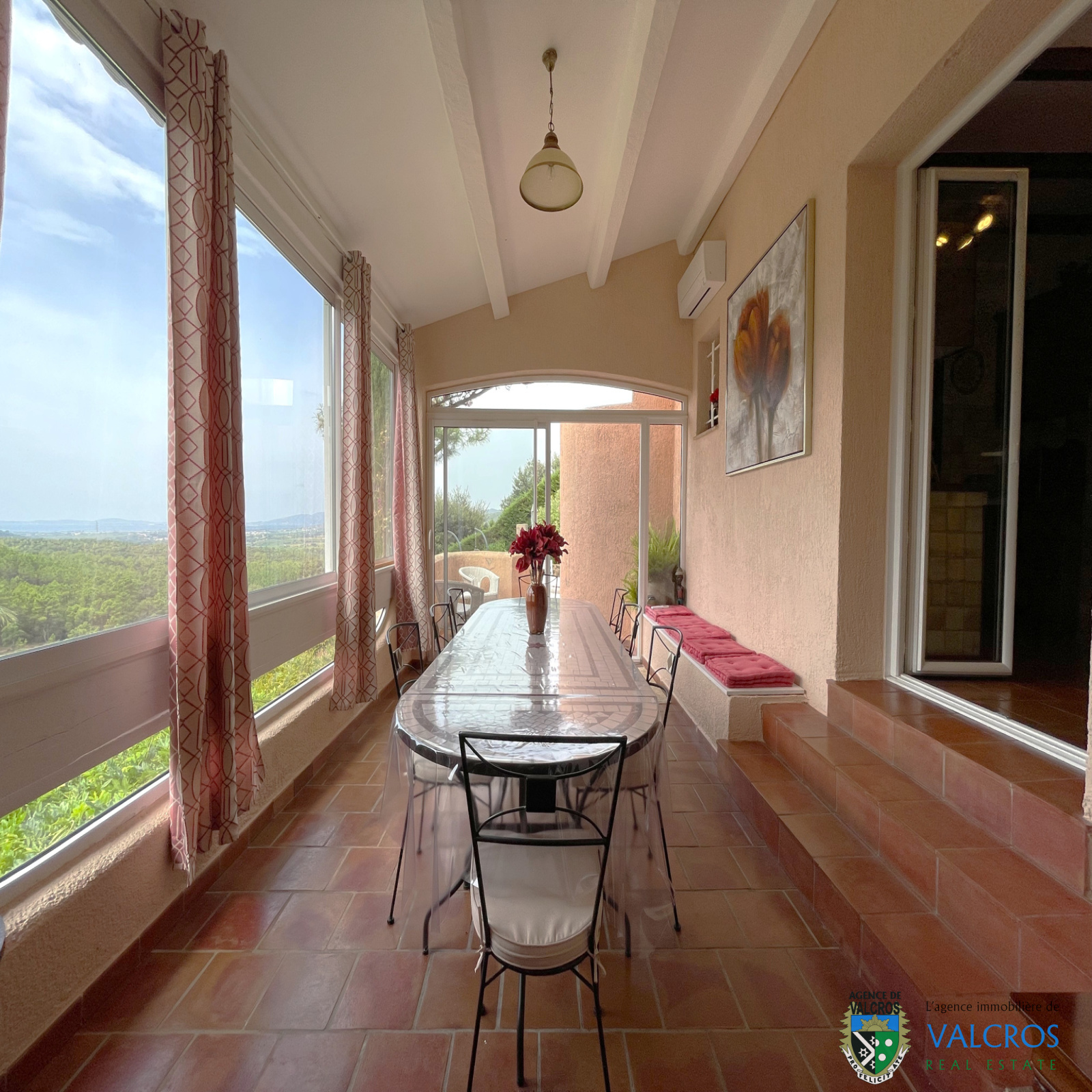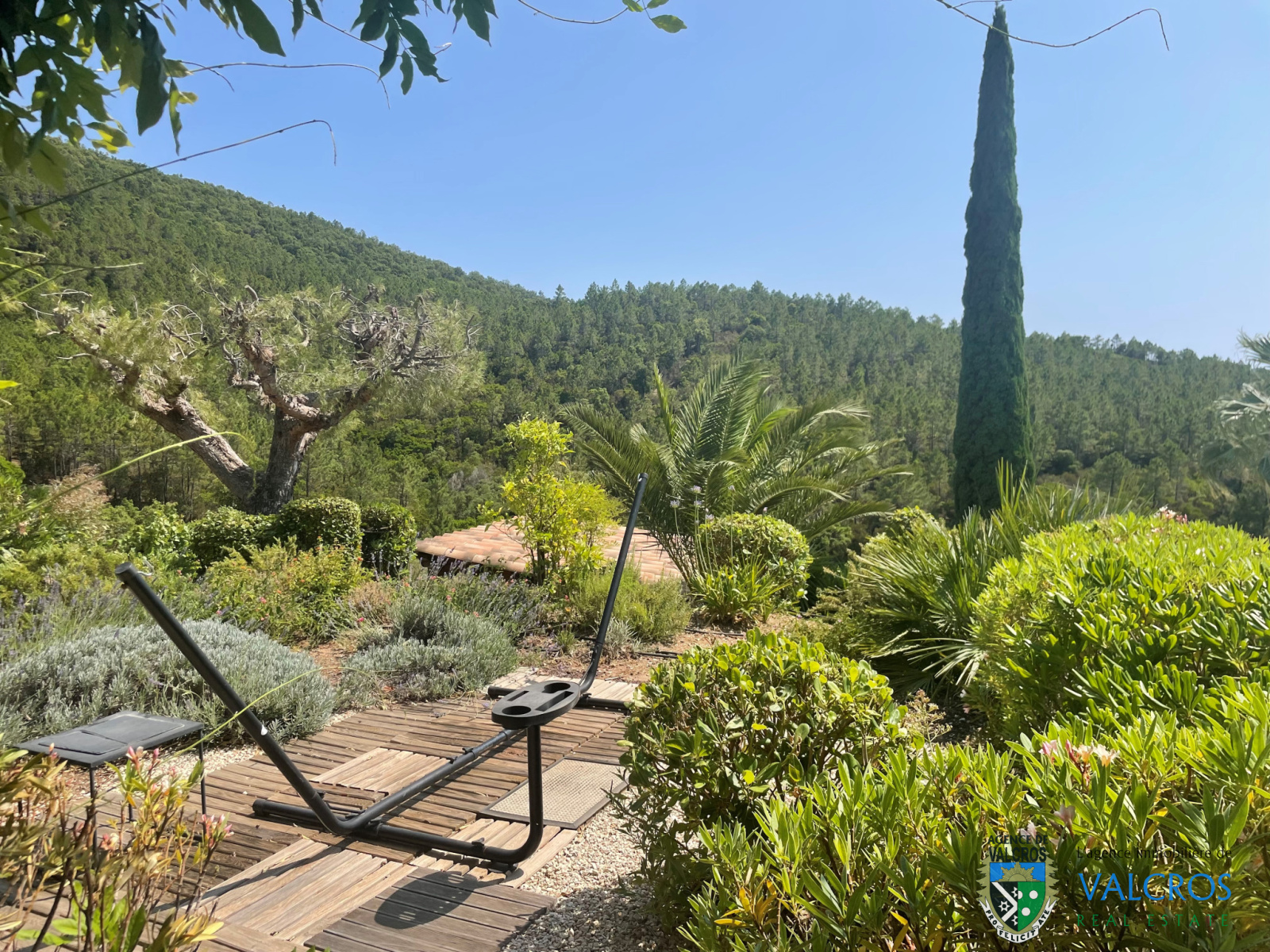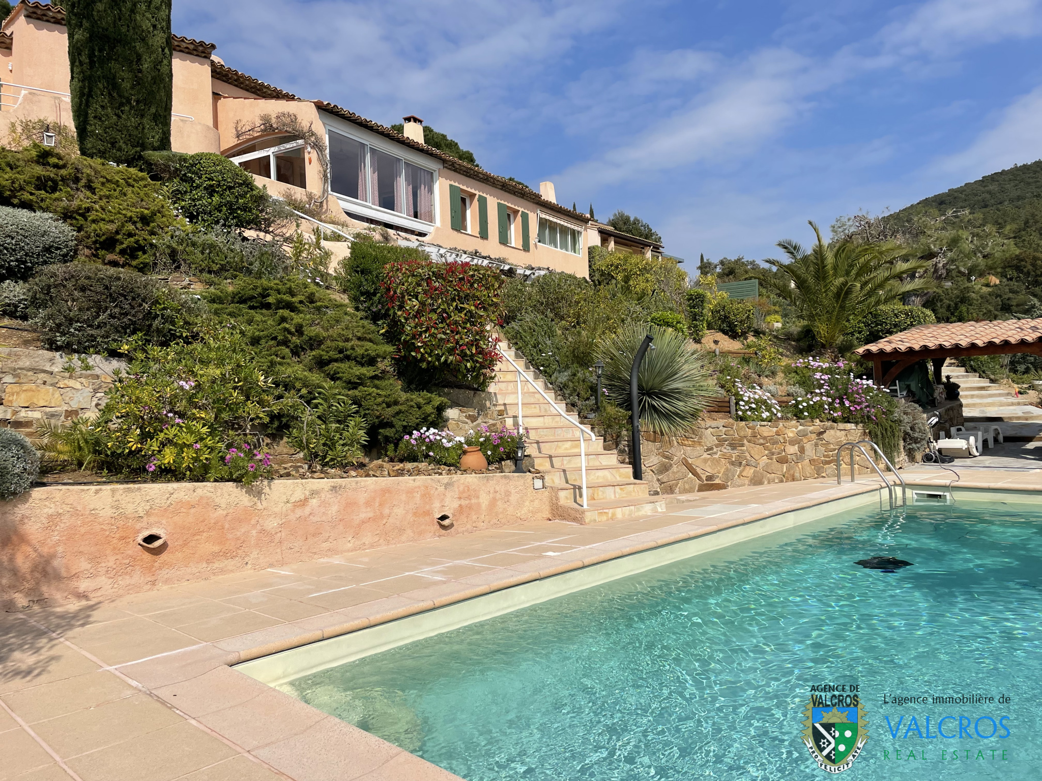 À quelques pas d’un prestigieux parcours de golf, cette villa aux lignes élégantes, dessinée dans les années 1980 avec une parfaite harmonie entre architecture et paysage, déploie tout son charme sur une parcelle généreuse de 2 175 m² exposée plein sud. Ici, le regard s’évade librement sur la mer scintillante les iles d'Hyères et les collines verdoyantes qui l’embrassent.