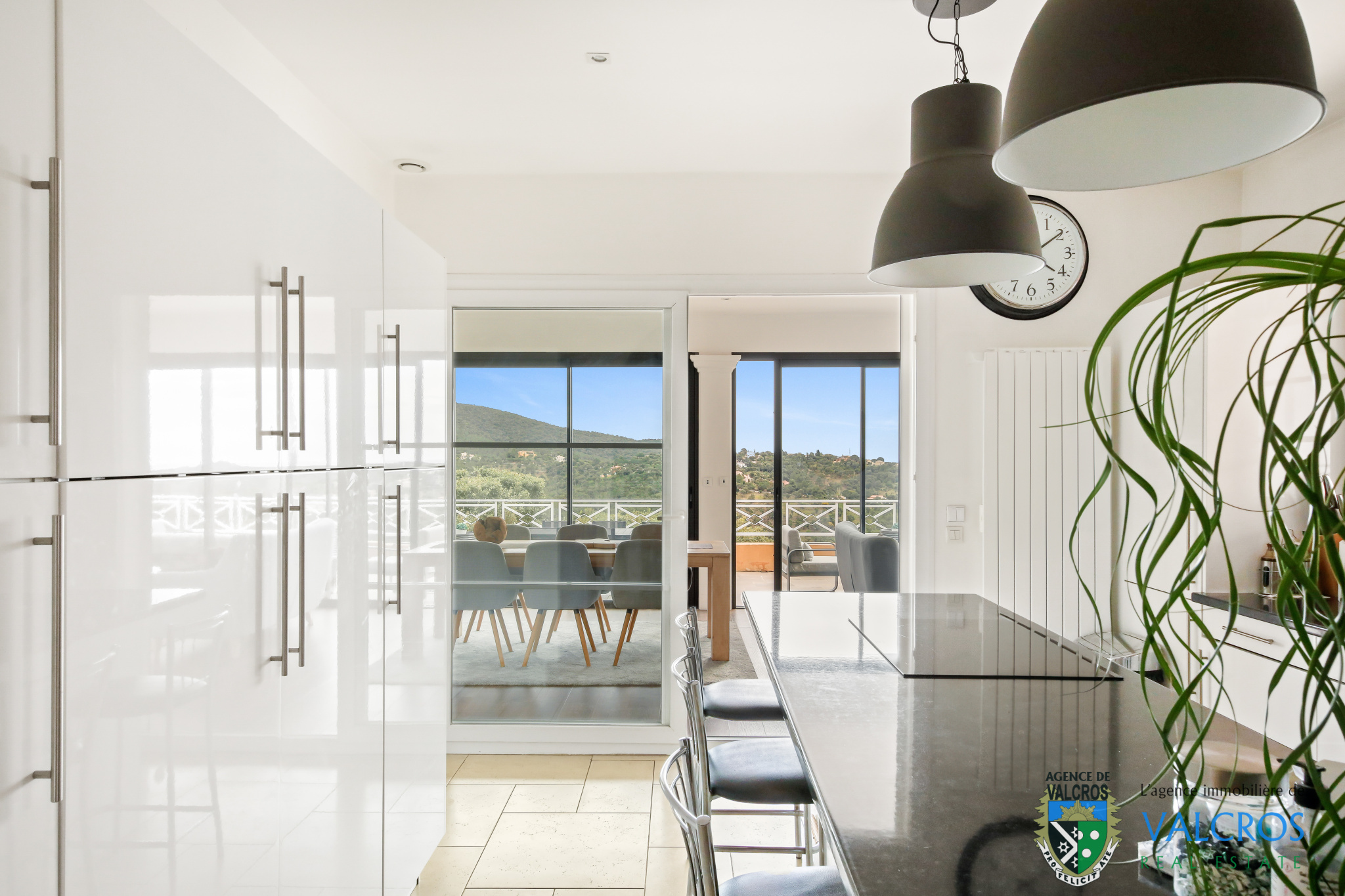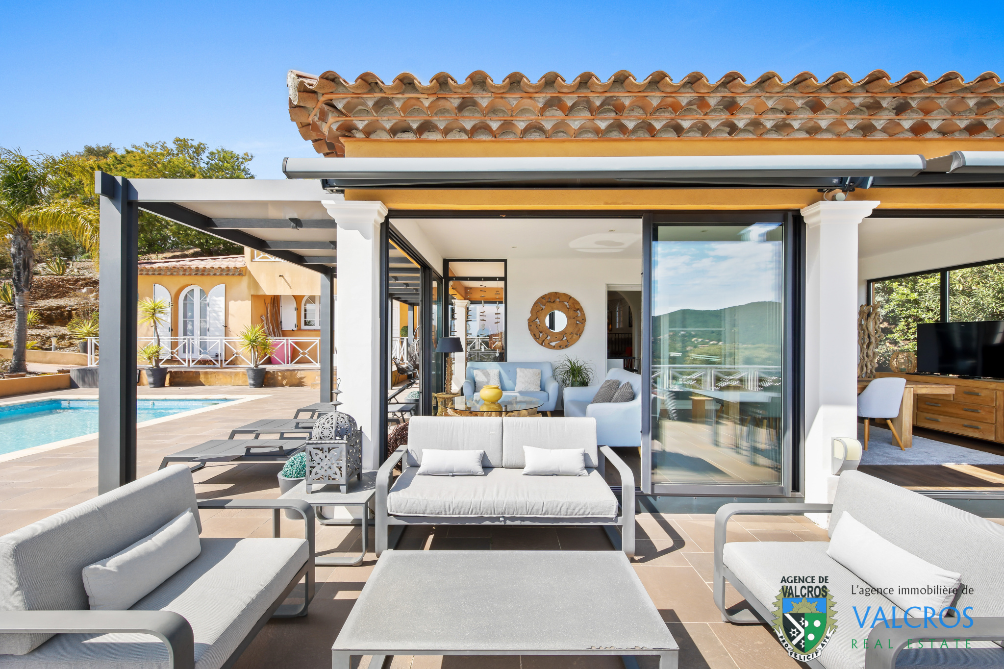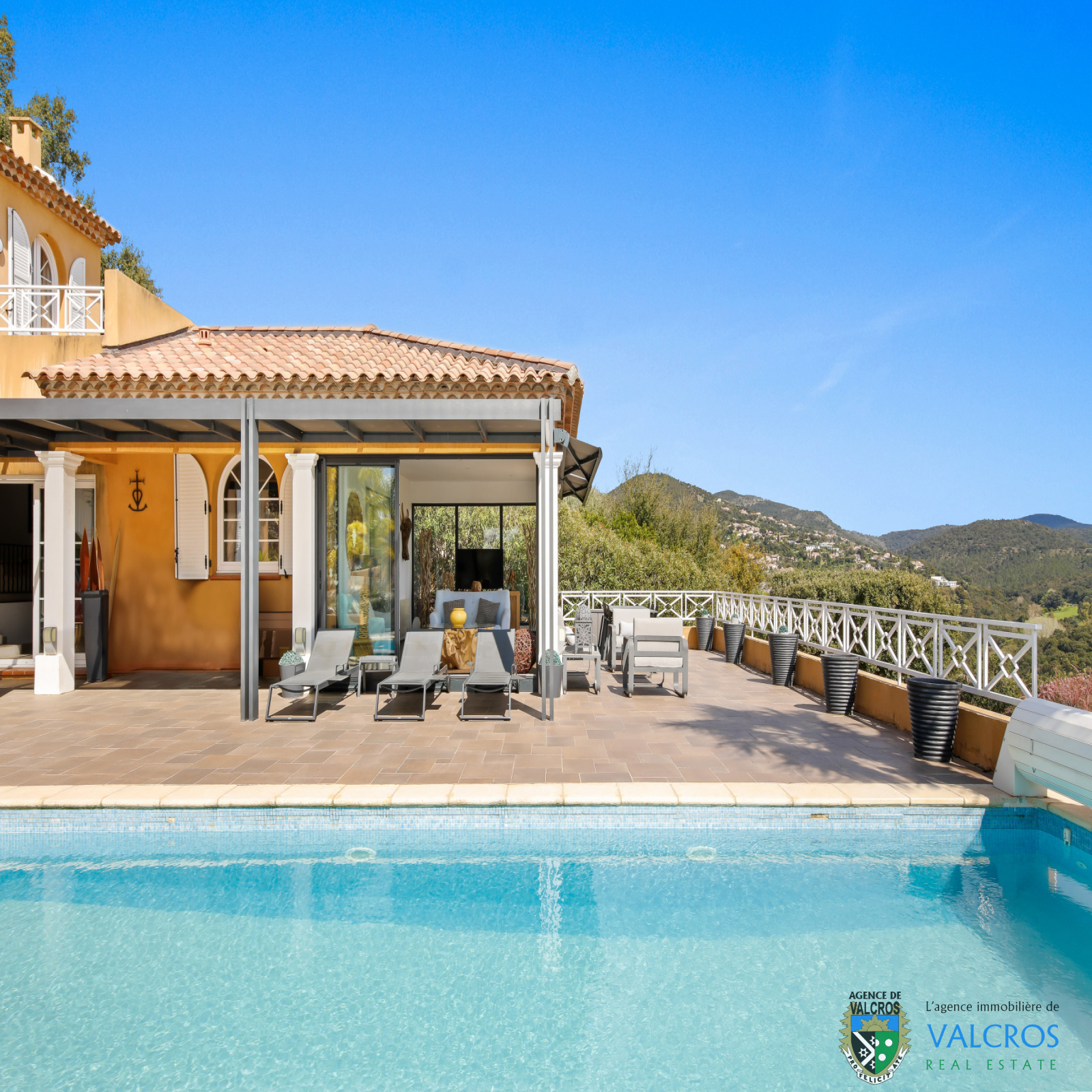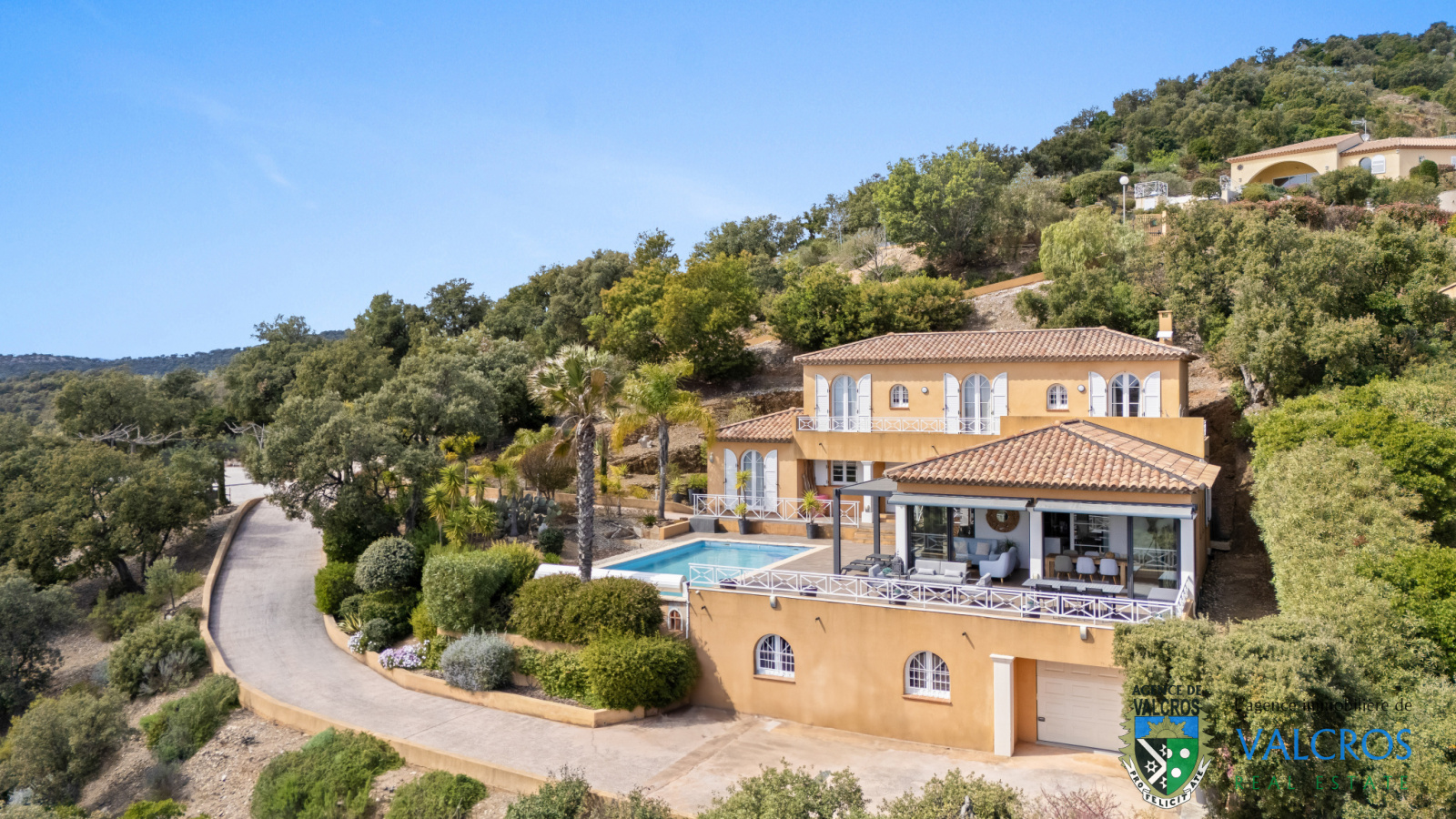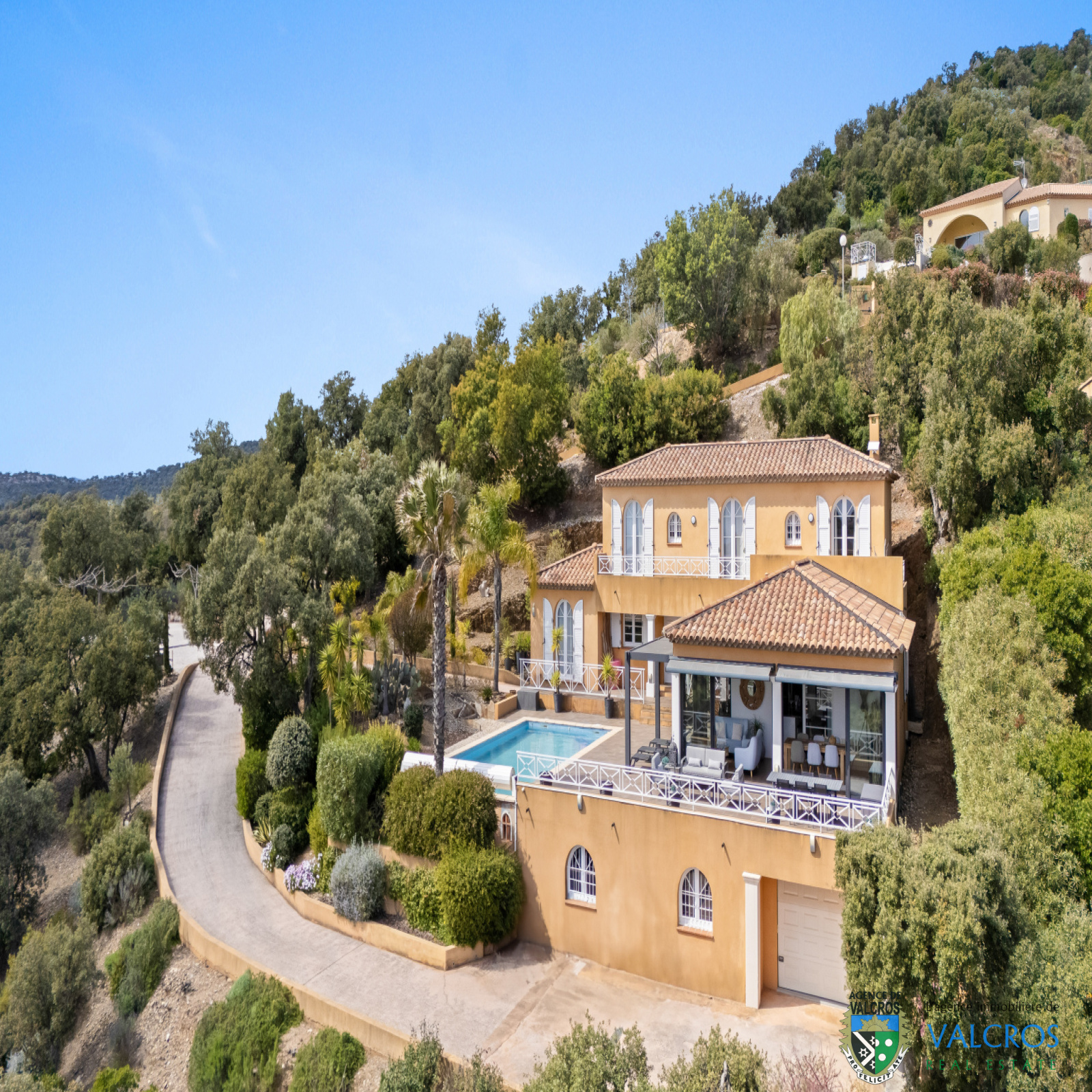 Vente villa 8 pièces exposée sud avec vue mer panoramique, piscine, terrasses, sans vis à vis et grand garage dans lotissement sécurisé proche du # Golf de Valcros.