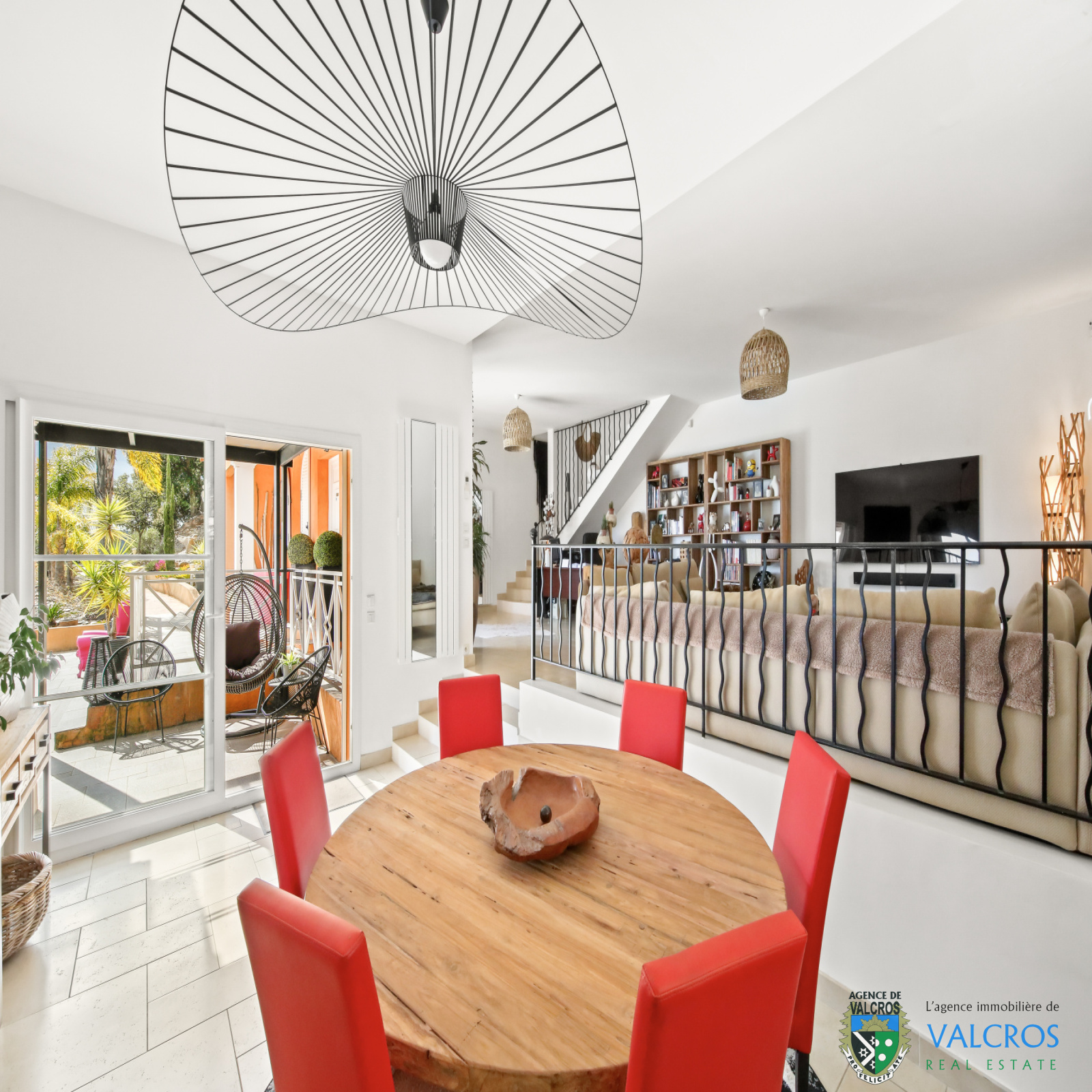 À l’intérieur, vous serez séduit par les volumes généreux et la lumière omniprésente, la villa comprend en rez de jardin : Un vaste séjour baigné de soleil, dominant la salle à manger, Une cuisine moderne ouverte sur une grande salle climatisée véritable pièce de vie, largement ouverte sur la terrasse et la piscine. Une suite parentale avec salle de bain, dressing et toilettes indépendants
