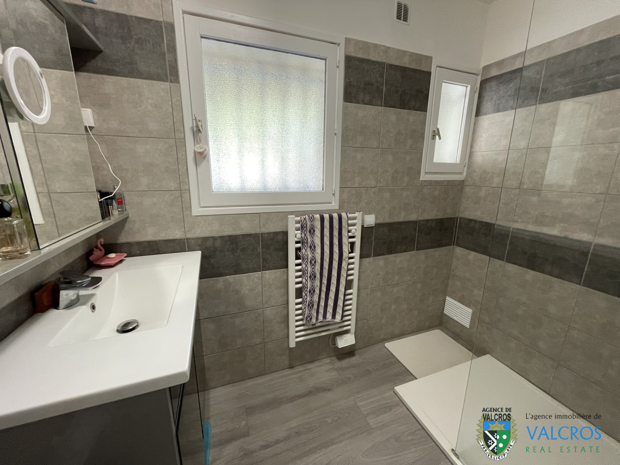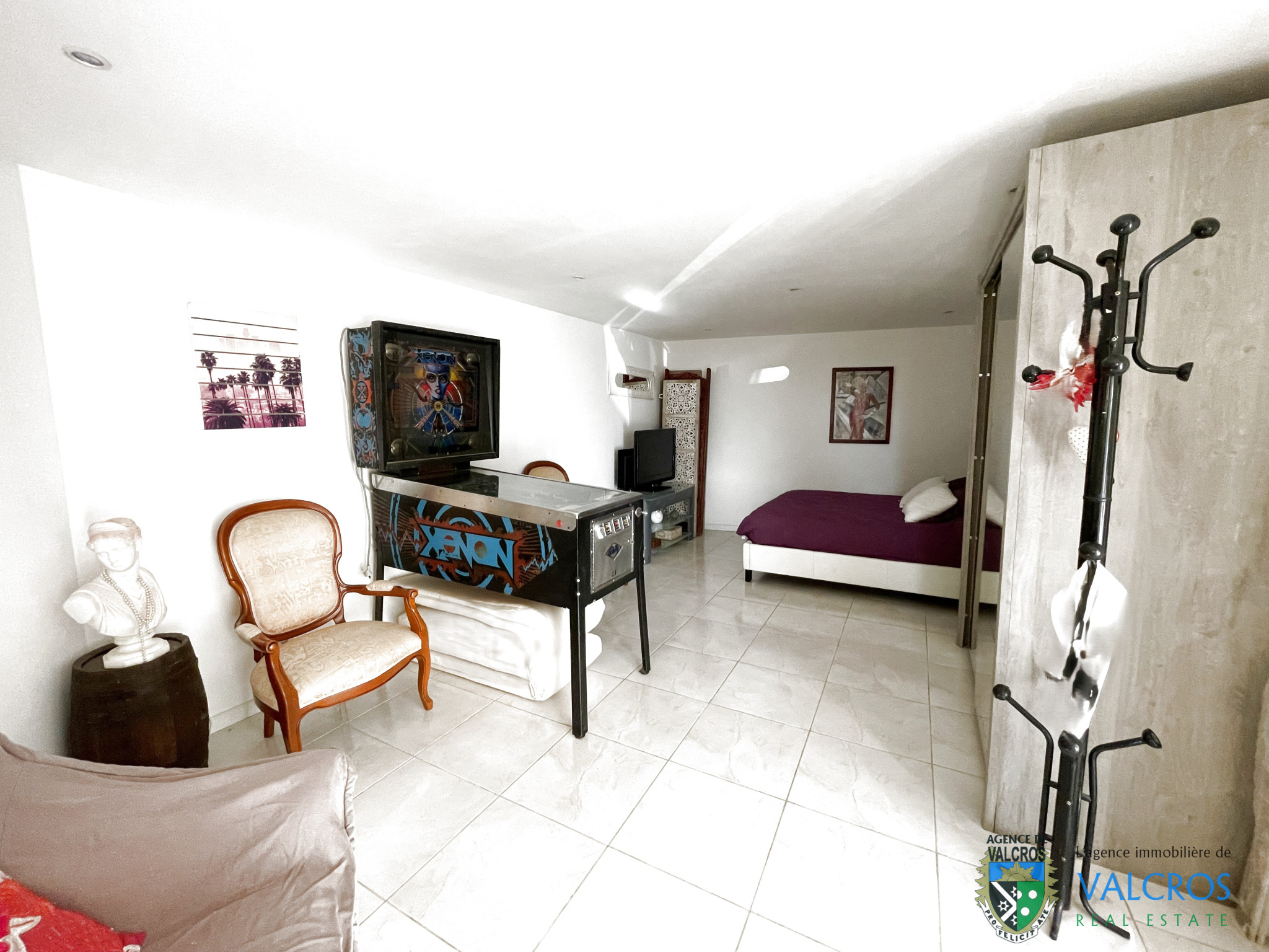 en sous-sol : un appartement de type 3, communiquant par un escalier intérieur (mais pouvant être indépendant), composé d'une salle à manger avec cuisine ouverte, une grande pièce, une chambre, avec salle de douche et WC; une buanderie, une garage et une cave.