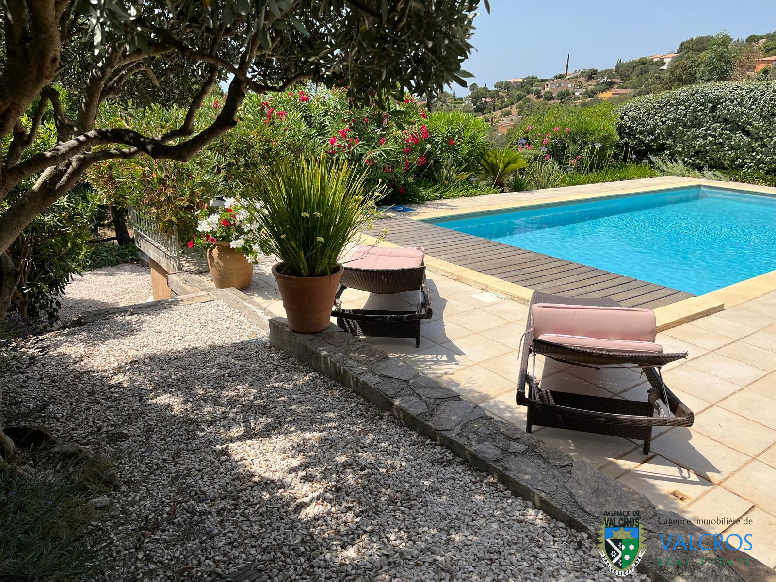 A vendre maison apercue mer 5 pièces avec garage et piscine dans lotissement sécurisé au Domaine de Valcros, La Londe les Maures.
