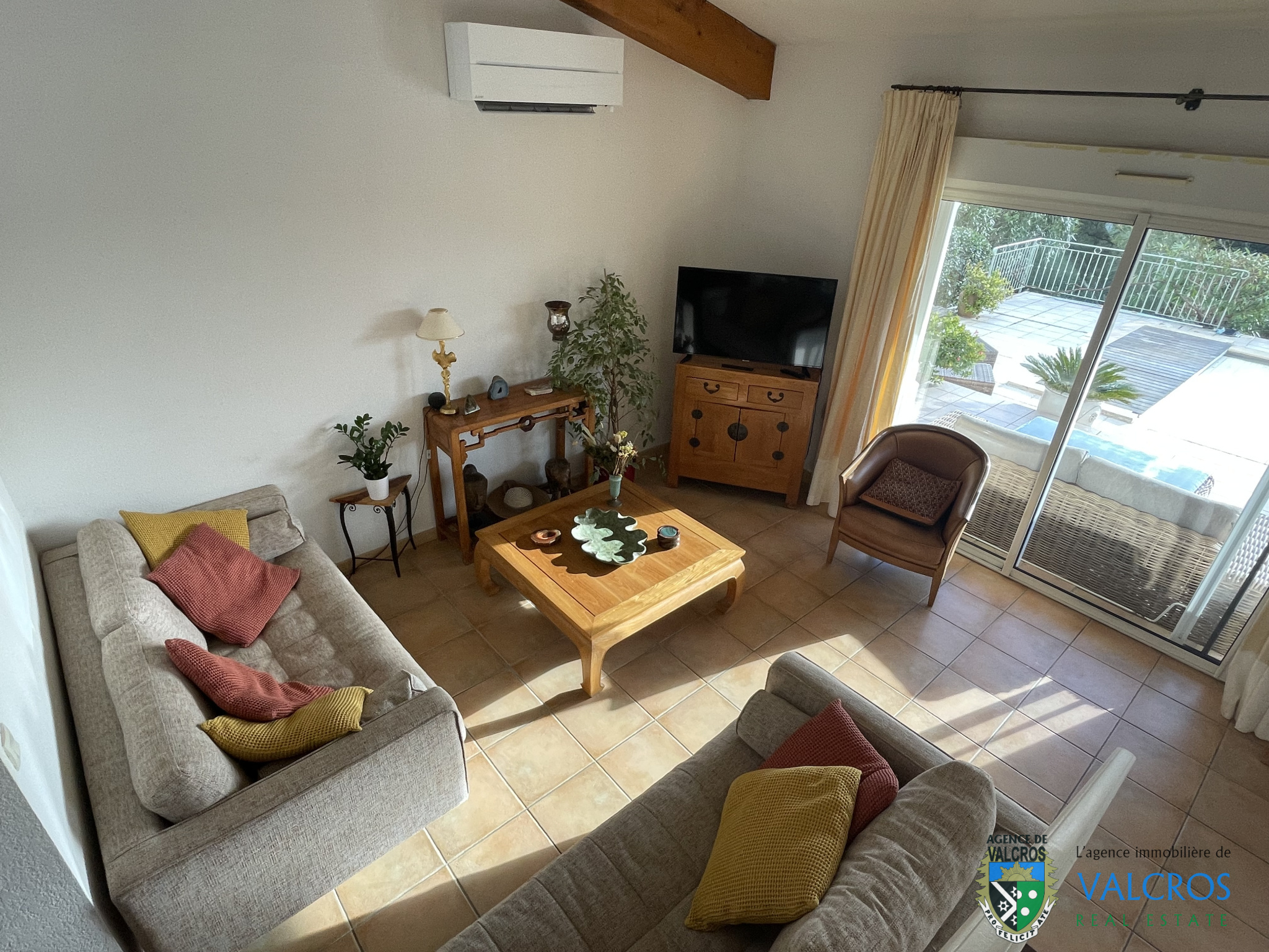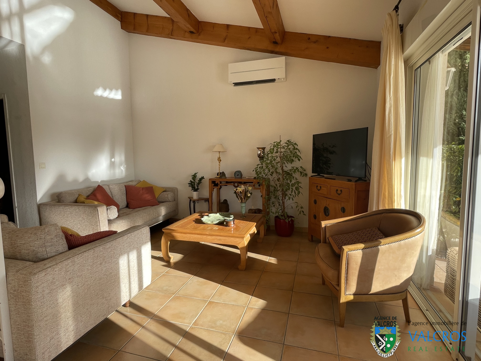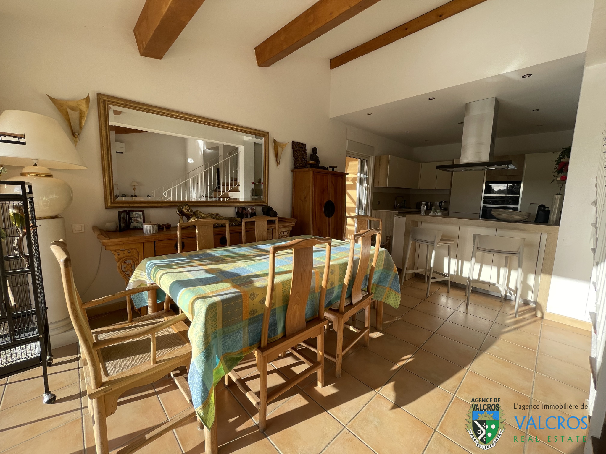L'ensemble ouvrant sur de larges terrasses et la piscine chauffée & couverte. La villa dispose également d'un garage, d'un stationnement privatif, un jardin aménagé et planté en limite d'un espace vert, terrain de pétanque.