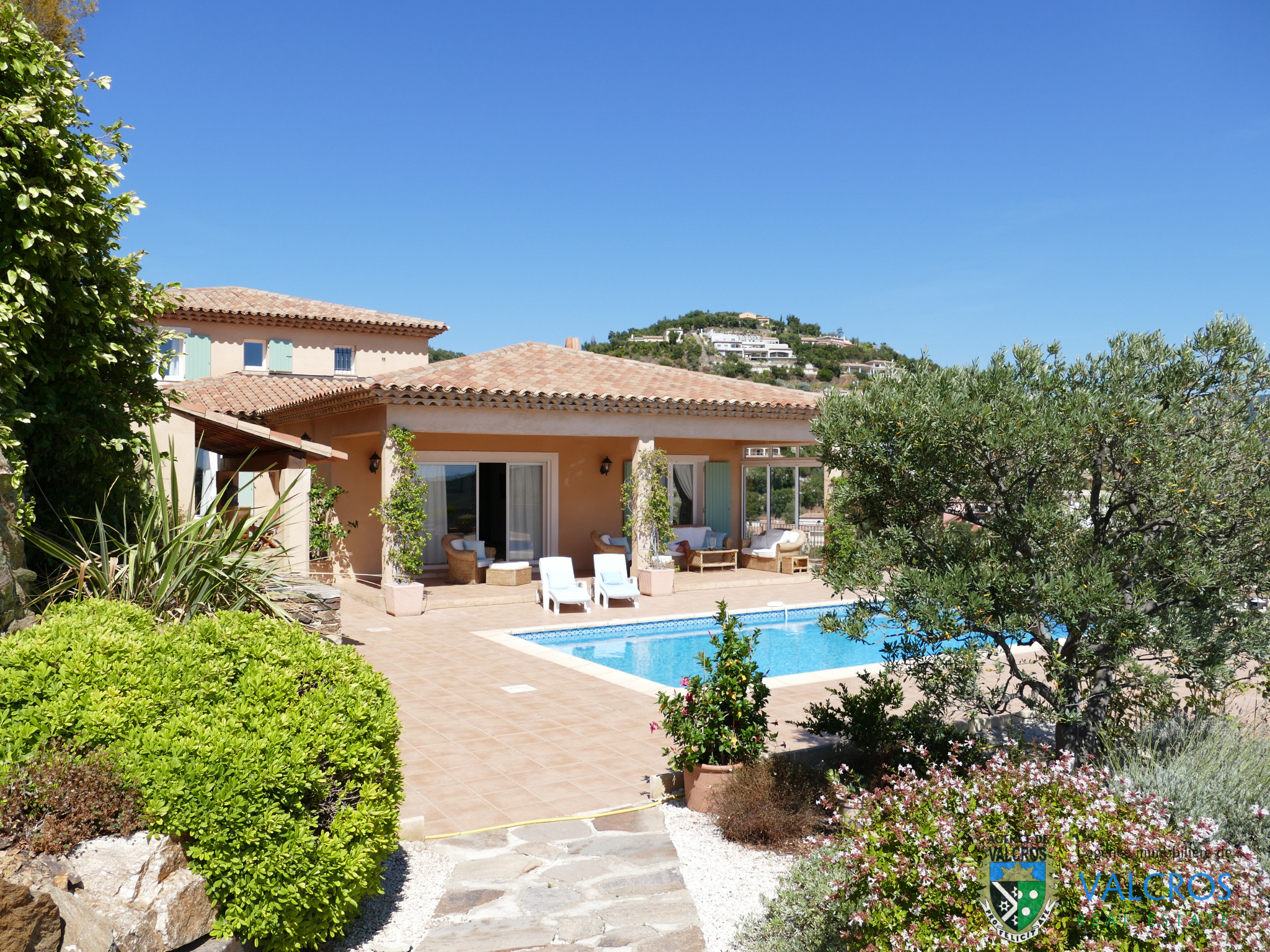 En position dominante et facilement accessible, la villa est construite et dessinée dans un style méditerranéen, sur une parcelle de 2500 m² exposée en Sud et en Est; ce qui lui confère un très large panorama et un cadre exclusif sans vis à vis.