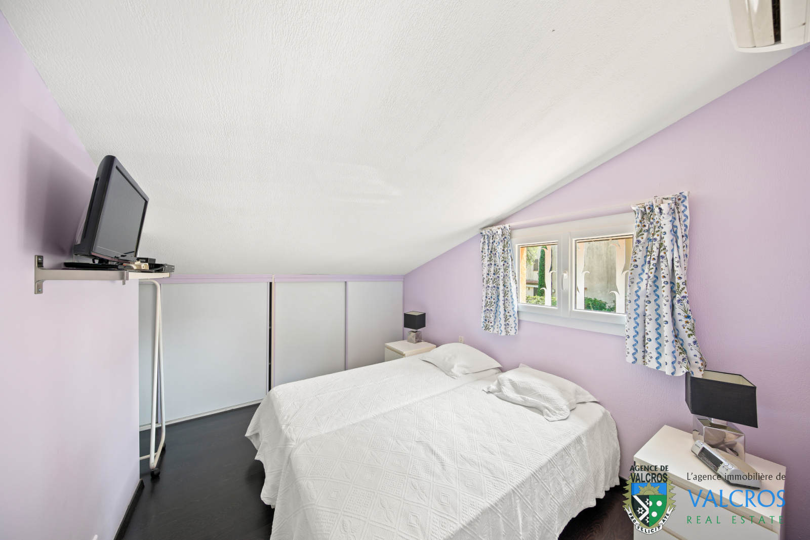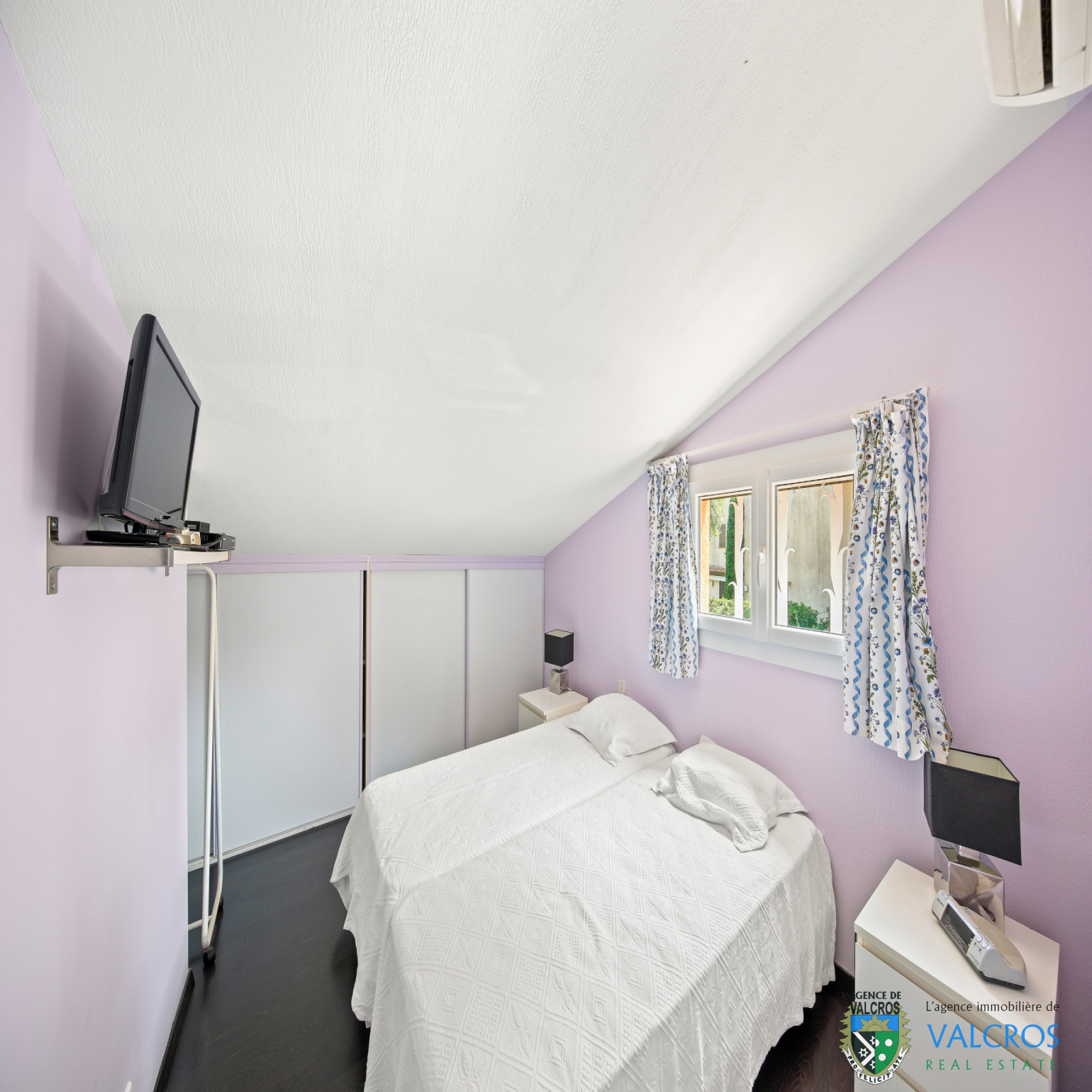 - À l’étage : un dégagement optimisé avec coin nuit cabine, une chambre climatisée avec grand placard sur mesure, ainsi qu’une élégante salle d’eau avec WC.
