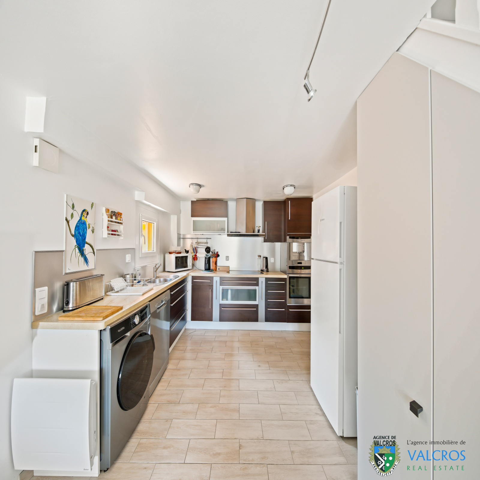 - Au rez-de-chaussée : un vaste espace de vie baigné de lumière, avec cuisine américaine, ouvrant sur une large terrasse privative avec coin cuisine d’été intégrée, douche extérieure et toilettes.