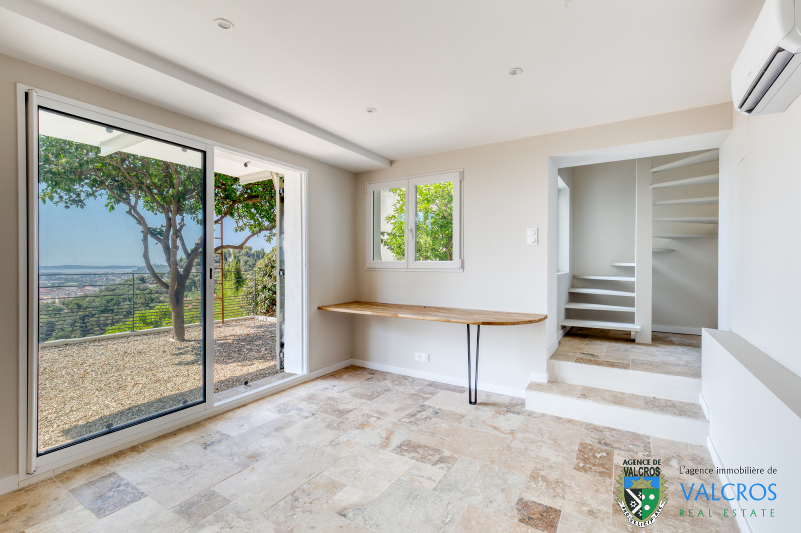 Au niveau inférieur, un bel espace bureau, 2 chambres et une salle d'eau avec wc. le tout s'ouvrant sur un espace extérieur arboré.